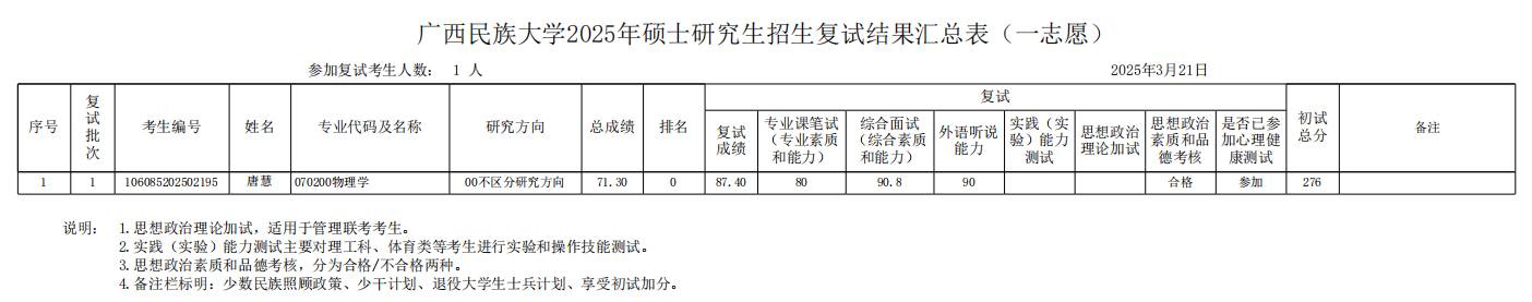 304永利集团学304永利集团2025年硕士研究生招生一志愿复试成绩汇总表: