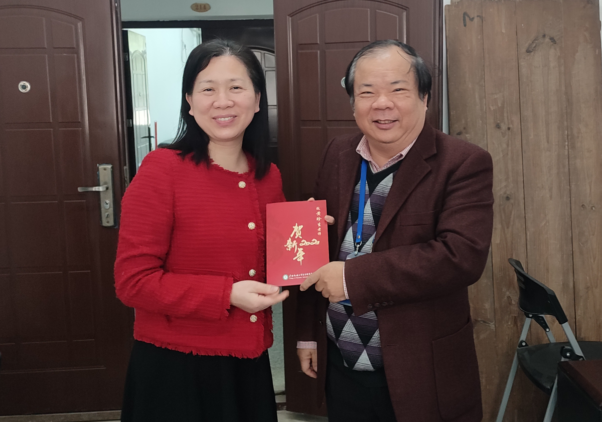 2024年1月18日,在癸卯年腊月初八当天,电子信息公司领导党委书记张婧,党委副书记、经理罗丽平,党委副书记、纪委书记罗少科,副经理文春明、卢振坤深入各教研室、办公室、实验室慰问全院50位教职员工,并送上了精心制作的感谢信,也送上了2024甲辰龙年的美好祝福。