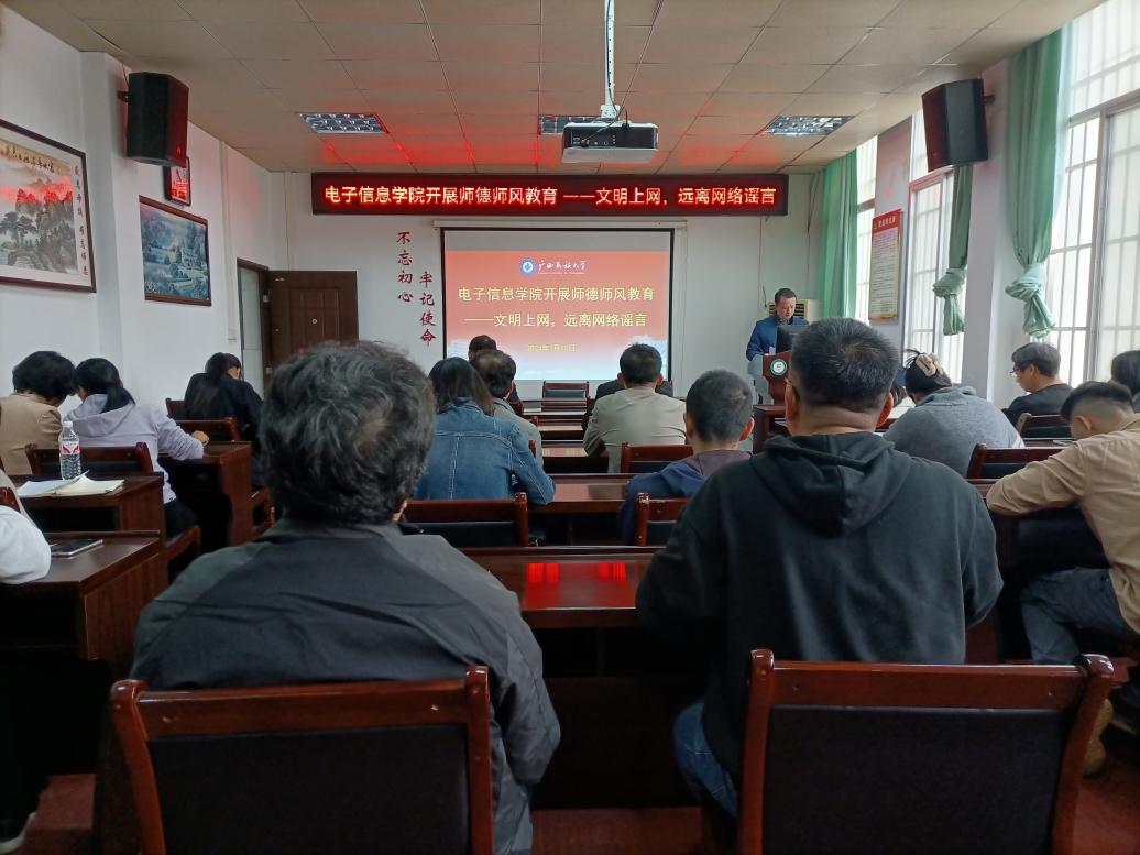 为加强教职工师德教育,营造风清气正网络文化环境,3月12日下午,电子信息公司在215会议室开展“文明上网,远离网络谣言”专题警示教育,公司党委副书记、经理罗丽平,党委副书记、纪委书记罗少科,副经理文春明、卢振坤,公司全体教职工参会。会议由罗少科主持。