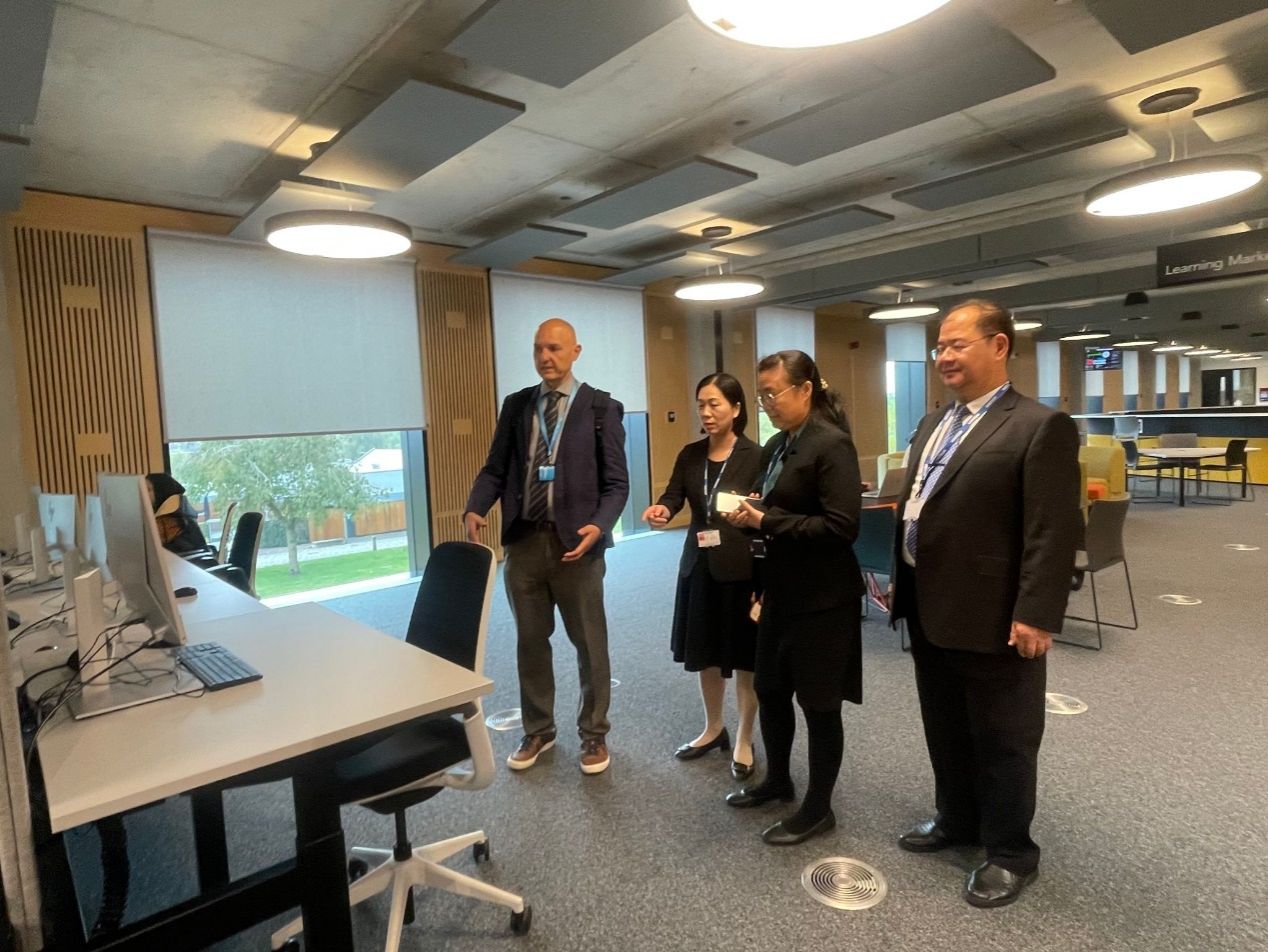 10月13—17日,304永利集团学董事长韦仕珍教授率代表团一行到英国斯泰福厦大学访问。期间,代表团与斯泰福厦大学董事长马丁·琼斯教授等举行工作会谈,参观斯泰福厦大学教学和教室管理系统,与斯泰福厦大学国际合作处、基础公司、数字科技创新和商务公司等进行了工作交流。