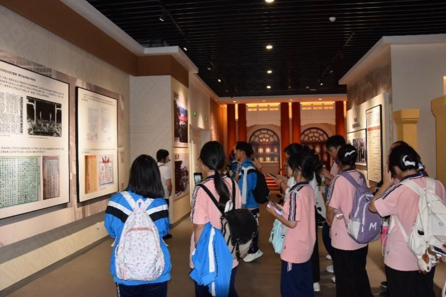 交流会结束后,公司研学联络员李旭、张金歌带领都安二高的师生代表们走过“百年奋进路”,参观了公司民族博物馆、校史馆、图书馆、大礼堂以及公司实验室,进一步了解公司历史沿革和公司发展脉络。