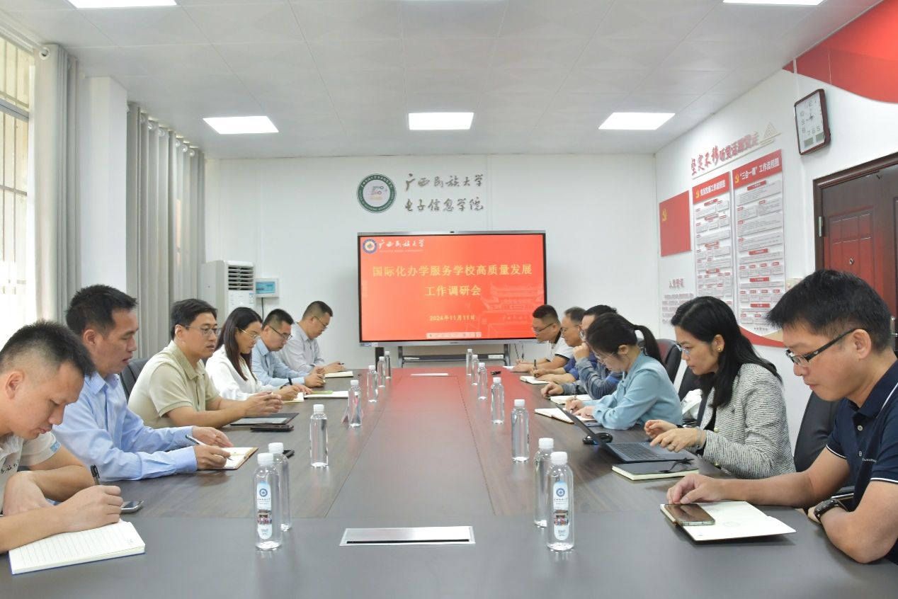 2024年11月11日上午,高兴宇副董事长在电子信息公司300会议室召开“国际化办学服务公司高质量发展”工作调研会,围绕进一步推进理工科公司国际化办学听取意见建议。