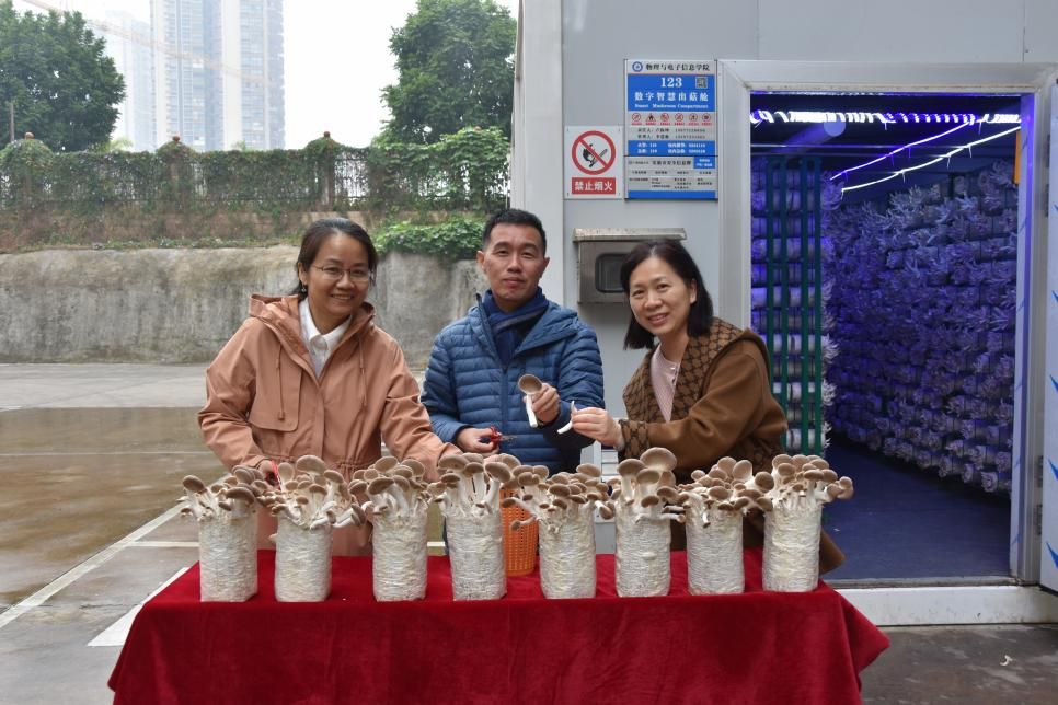 12月10日上午,由公司李云教授团队自主研发的数字智慧蘑菇仓开启了首次开仓采摘活动,标志着公司在智慧农业领域的科研创新取得了重要成果。科技处处长唐国吉、公司经理罗丽平、项目负责人李云教授共同启动开仓摘菇活动,相关职能部门以及公司师生代表前来参加摘菇活动。