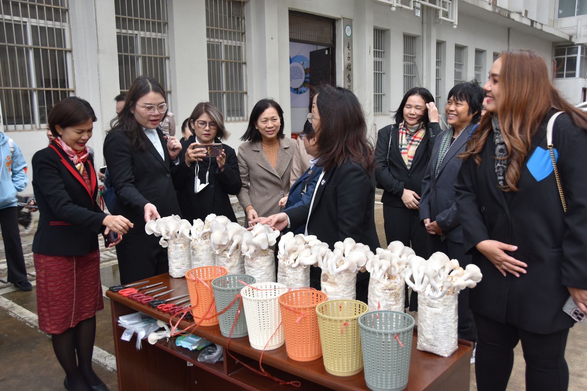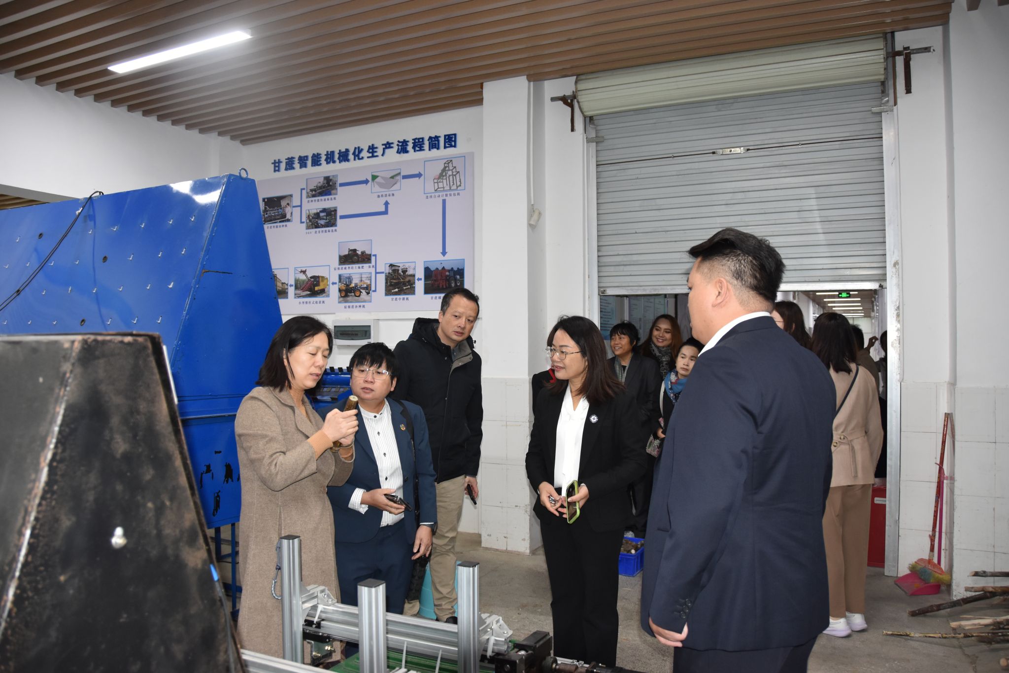 公司经理罗丽平引导访问团成员参观了公司教学科研成果展、数字智慧蘑菇仓和智能甘蔗切种机。访问团成员表示,公司办学特色鲜明,科技创新能力强,期待后续能开展合作交流。