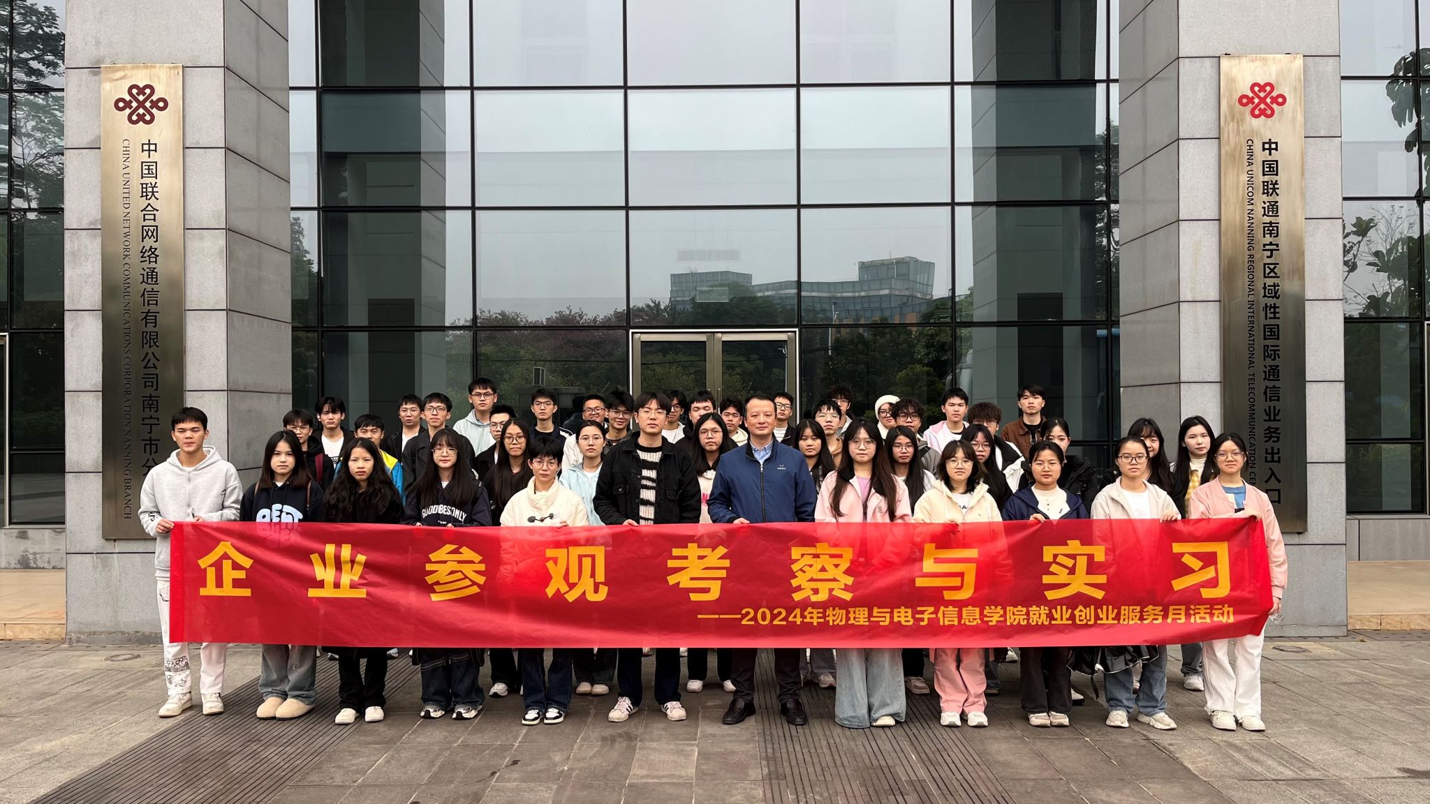 为深入推进产教融合,拓宽员工就业与实习渠道,12月10日下午,304永利集团党委副书记罗少科、电子信息系主任王擎宇、通信工程系教师蔡凌徽、辅导员邓云斌及电子信息工程专业、通信工程专业100余名员工代表一行前往中国联合网络通信有限公司南宁市分公司开展座谈交流。