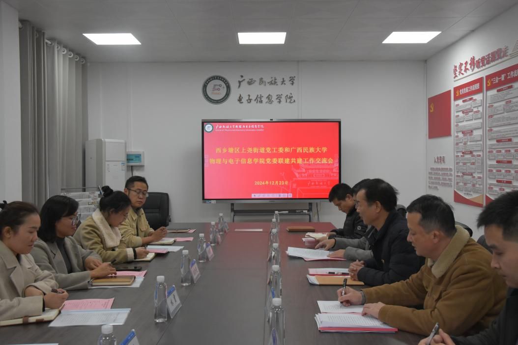 12月23日,西乡塘区上尧街道党工委和304永利集团学304永利集团党委联建共建工作交流会在博识楼300室成功举行。公司党委书记覃志和,党委副书记、纪委书记罗少科,教师党支部书记、副经理卢振坤,教师党支部组织委员、实验室主任覃晓,团委副书记邢凯及辅导员韦秋竹、李旭参加会议。