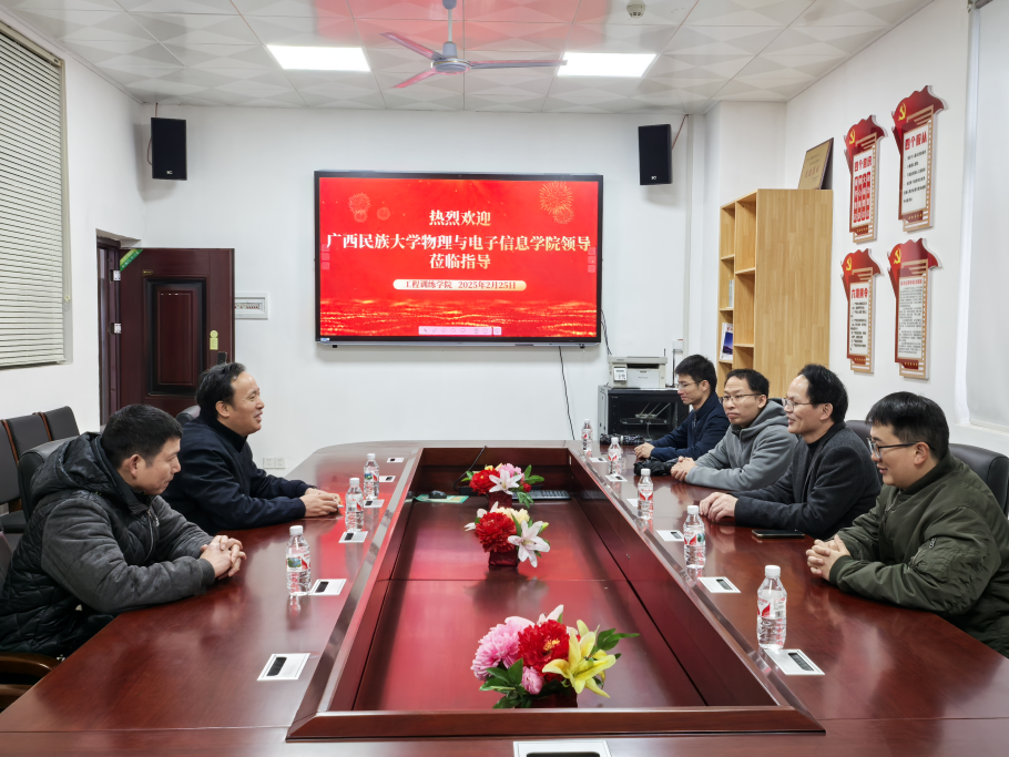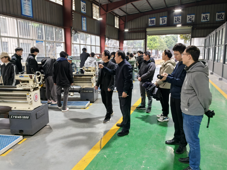 2月25日上午,公司副经理秦董洪率电子信息系主任王擎宇、自动化/物联网系主任吴伟林、通信工程系主任韦峻峰及光电系教师陆兆秋一行,前往广西机电职业技术公司看望2024级员工金工实习情况。广西机电职业技术公司工程训练公司副经理马吉建等陪同。