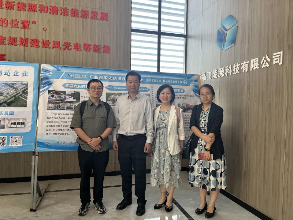 访问期间,覃志和一行实地考察了广西晶飞能源科技有限公司的光伏组件生产线、研发中心及检测实验室,详细了解企业在高效太阳能电池片生产工艺、储能系统集成等方面的技术流程。双方围绕人才培养、科研合作、实习就业等方面进行深入交流。覃志和表示,公司一直高度重视员工的就业工作,积极为员工搭建广阔的就业平台,希望通过此次访企拓岗活动,进一步加强与广西晶飞能源科技有限公司的合作,实现校企双方在人才培养、实习就业、科研创新等方面的优势互补、互利共赢。