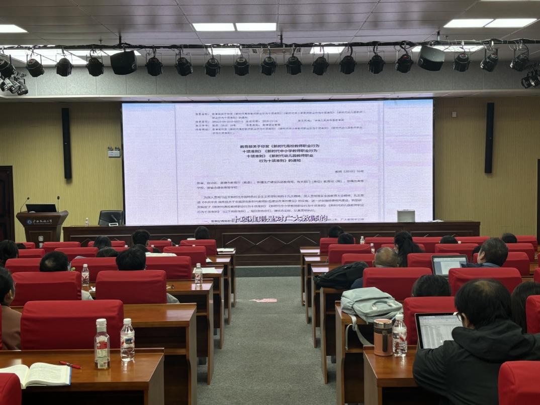 本次专题学习会通过政策解读与警示教育相结合的方式,进一步强化了全体教职工的思想认同和行动自觉,为持续打造政治素质过硬、师德师风优良、业务能力精湛的高水平教师队伍奠定了坚实基础。(初审:李旭 复审:玉琳 终审:覃志和)