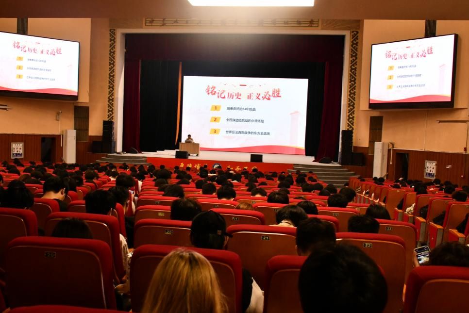 课上,覃志和围绕“艰难曲折的14年抗战”“全民族团结抗战的中流砥柱”“世界反法西斯战争的东方主战场”三个方面,系统回顾了中国人民抗日战争的壮阔历程与伟大意义。他通过详实的历史事件和感人故事,讲述了中华民族在危亡之际的艰苦卓绝与不屈抗争,阐释了中国共产党在抗战中发挥的中流砥柱作用,以及中国战场作为世界反法西斯战争东方主战场的重要贡献和历史地位。他强调,抗战精神是中华民族宝贵的精神财富,必须永远铭记、代代相传。