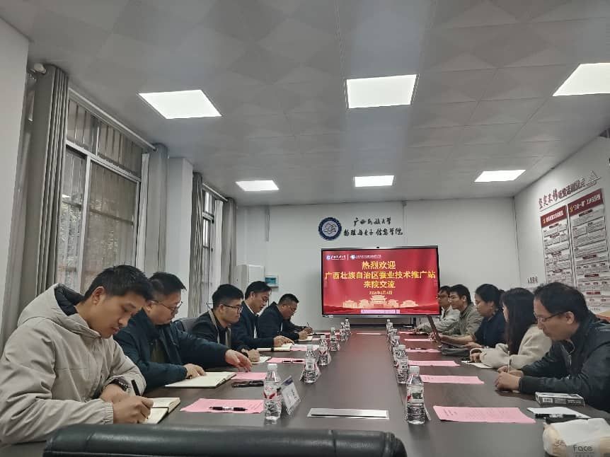 2月4日,广西蚕业技术推广站党委书记、站长卿军一行莅临公司,就智慧农业、人工智能与蚕桑产业融合发展等议题与公司开展交流。公司教师李云、韦峻峰、吴伟林、杨蕾蕾、谢忠坚等参加此次交流。