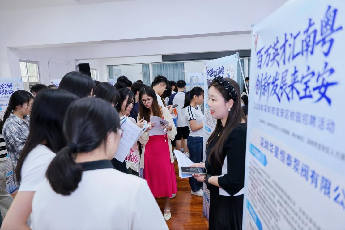 本次招聘会共吸引30余家来自深圳市宝安区的用人单位进校揽才,涵盖人工智能、电子信息、机械制造、电气工程、市场营销等多个领域,提供上百个优质就业岗位,为毕业生提供了丰富的择业机会。招聘会现场设置了简历投递与初步面试环节。公司与人工智能公司的毕业生们积极与心仪企业沟通,主动展示自身的专业能力与求职意愿,其扎实的专业素养和良好的精神风貌得到了用人单位的一致好评。